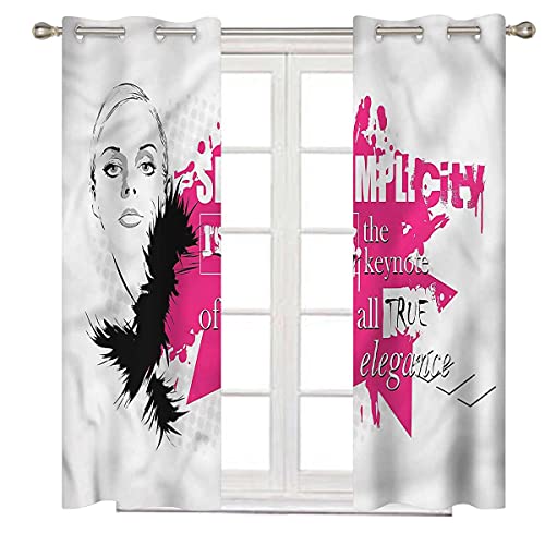 One-Day Sale: Up to 70% Off Girls Black Curtains for Bedroom 108 Inch Long Inspirational Vogue Kids Bedroom Blackout Grommet Top Curtain Panels W72 x H108